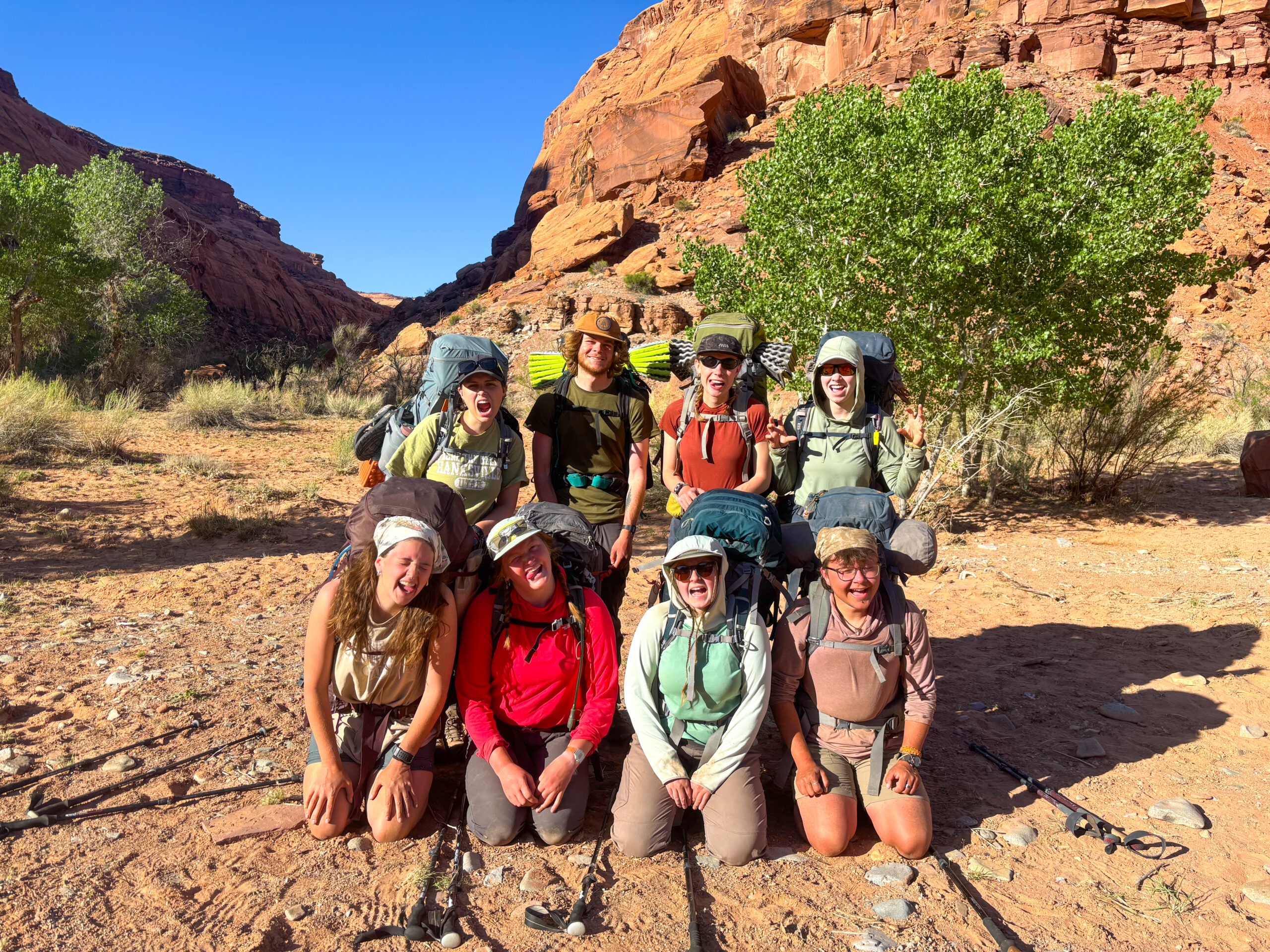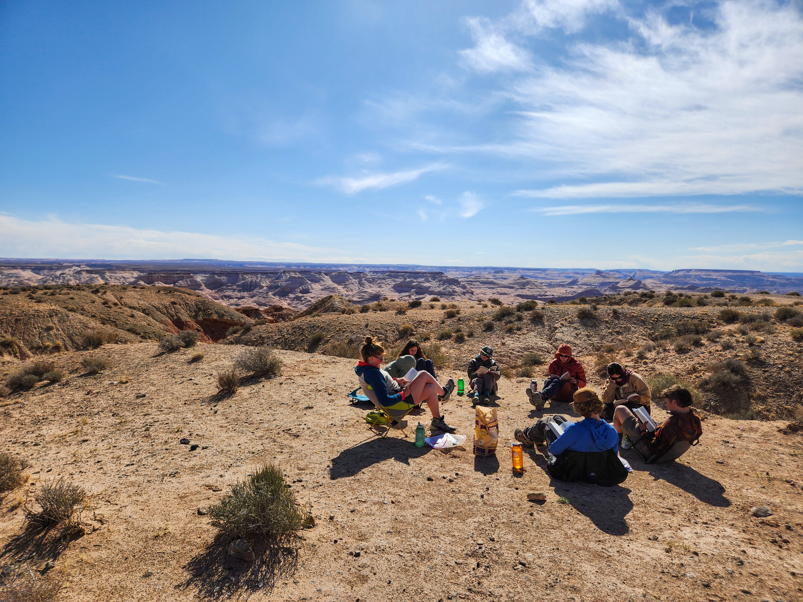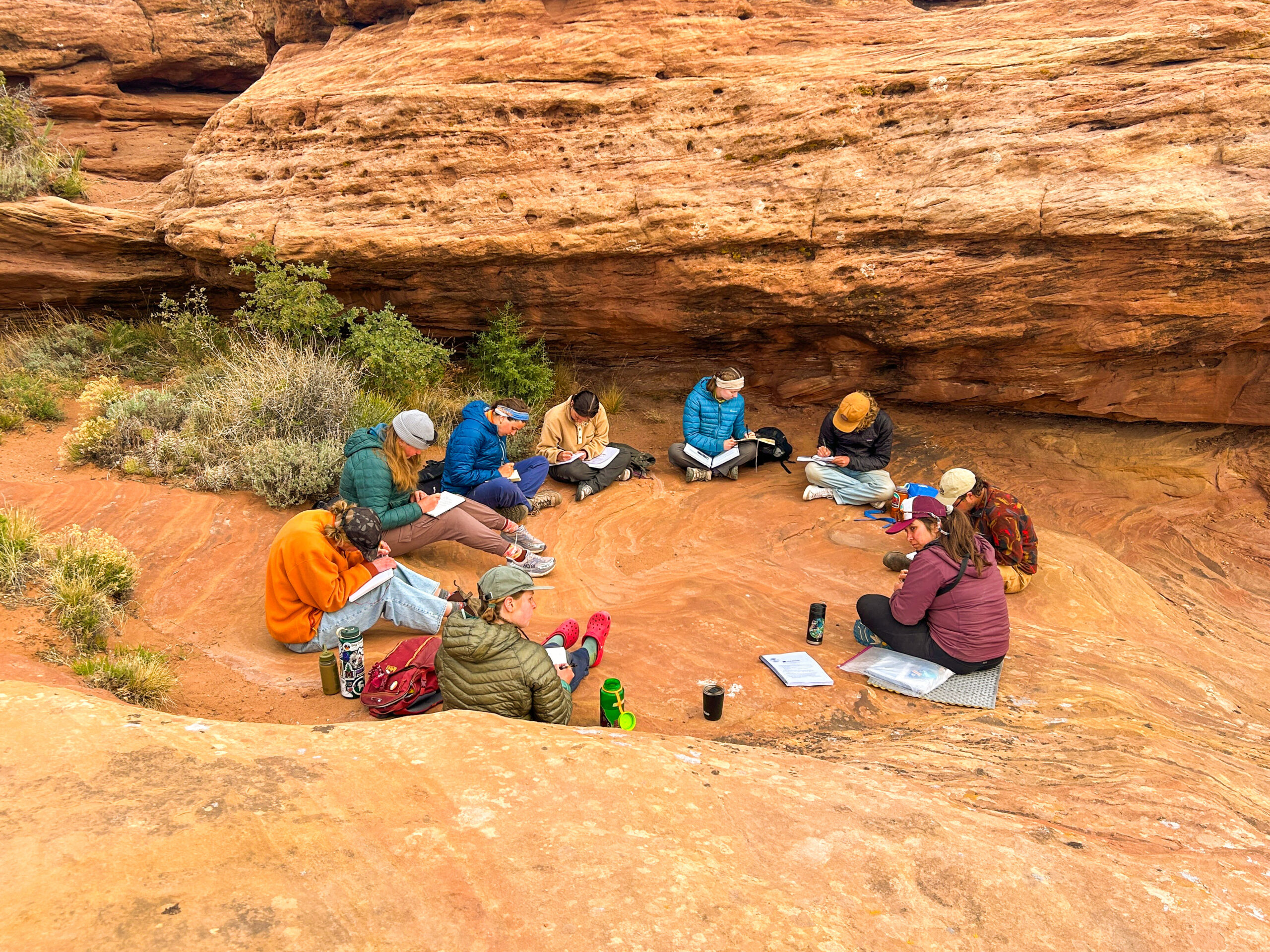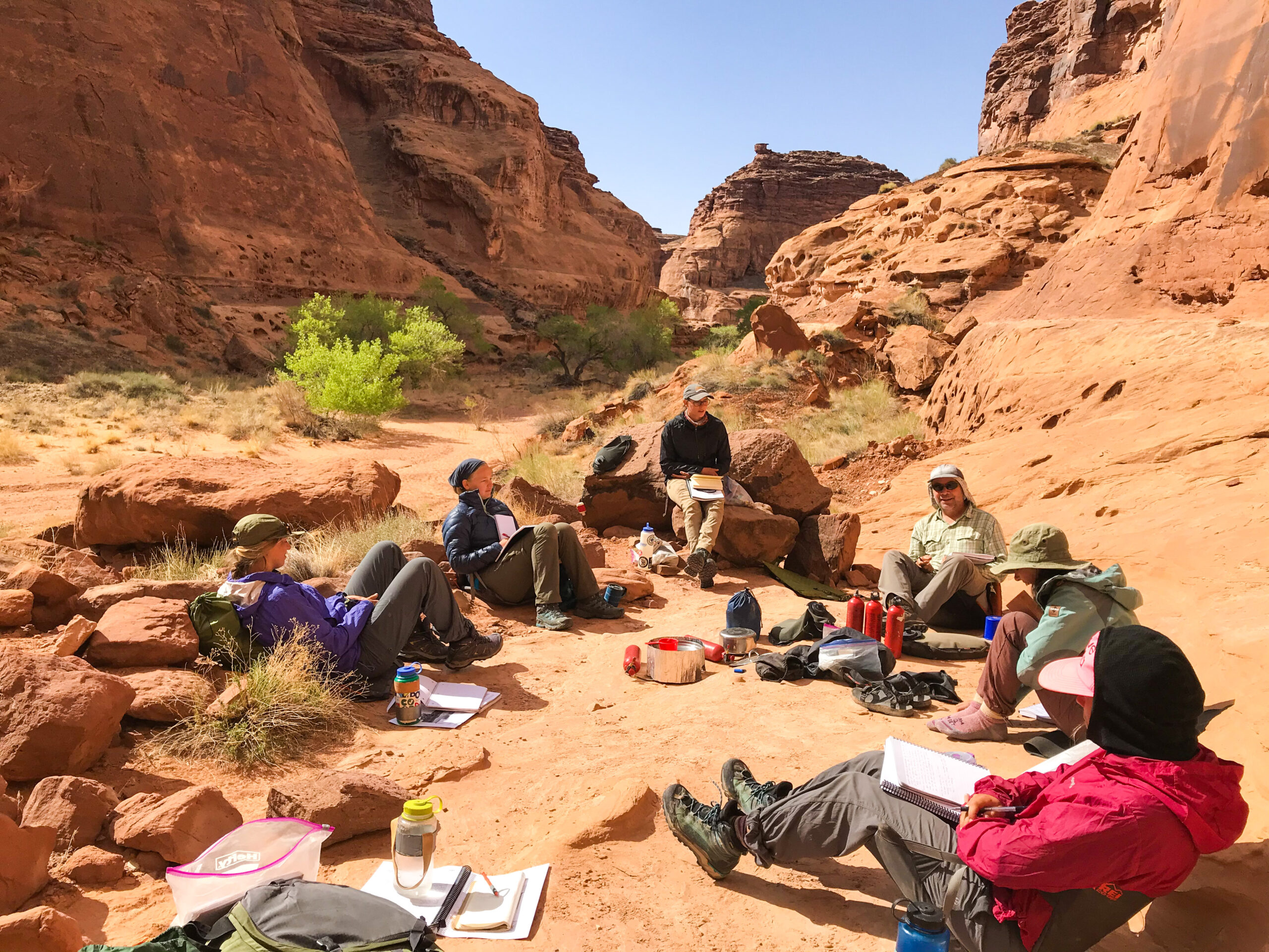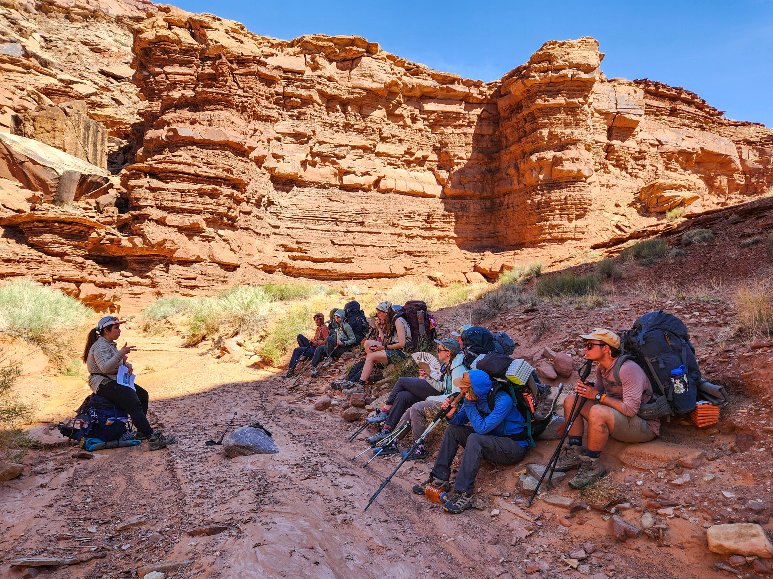 The Colorado Plateau semester entails a combination of backcountry expeditions, meetings with guest speakers, and site visits. The course is split into five sections, each lasting between 12-16 days. Approximately two-thirds of the course is spent in the backcountry, traveling across the landscape. The remaining one-third of the course duration is spent engaging with community members in the region.