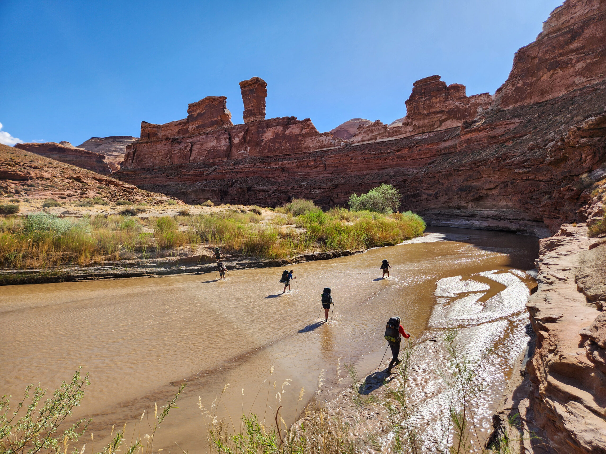 The Labyrinth Canyon canoe trip provides a change of pace from backpacking, and concentrates on riverine and riparian ecology, water policy, bioregional history, and sense of place.